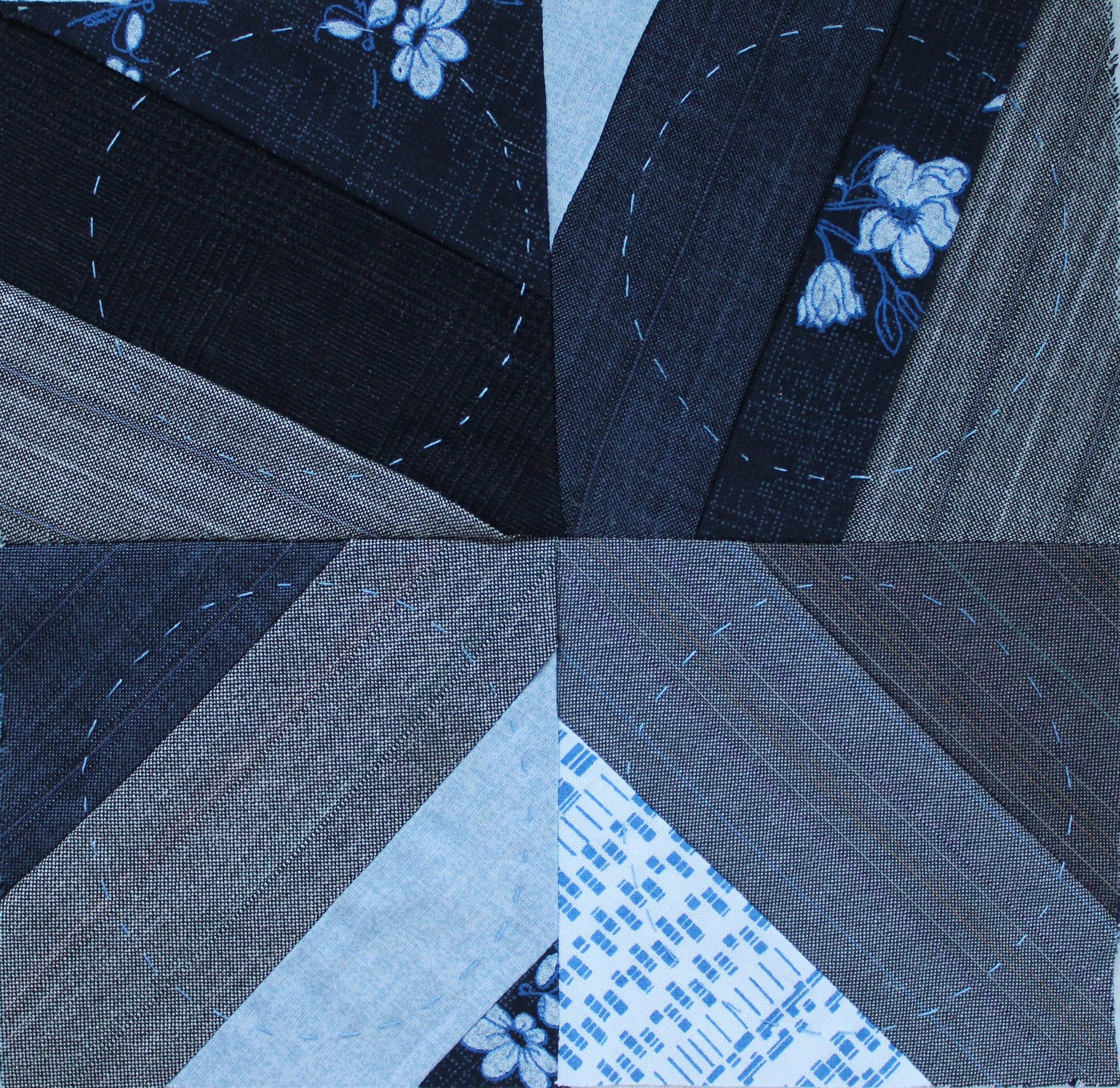 'Puddle' Hand pieced strip block, with hand-sewn embellishment.