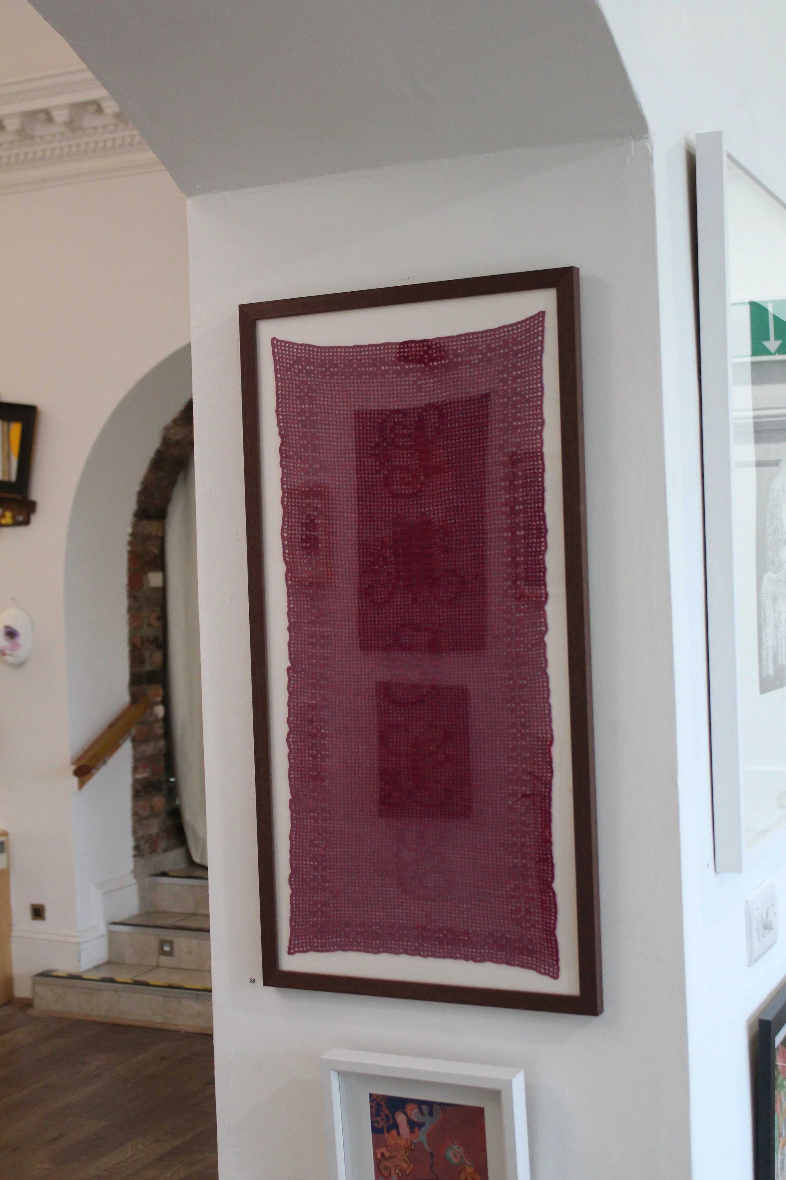 The idea for using filet crochet came to Ruby after she made a few small scale swatches, she found the ‘almost-there’ nature of the stitching really interesting and she knew she wanted to use this to play with words and imagery that we often hide from other people.